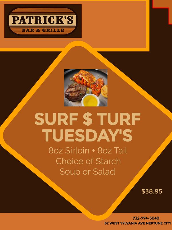 Tuesday Is Surf and Turf Night $38.95 .....Wednesday is Prime Rib Nights $29.95...